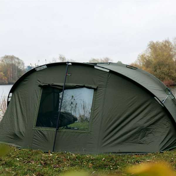 Dvosedežni bivak serije C, izdelan iz izjemno robustnega in enostavno zložljivega dvojnega rebrastega okvirja, je lahek in enostaven za postavitev zavetje, za katerega niste vedeli, da ga potrebujete. Zaradi optimizirane zasnove bodo kraparji v notranjosti našli veliko prostora, kar vam omogoča shranjevanje in organizacijo opreme brez kompromisov. Zahvaljujoč dvosmernim zadrgam na sprednjih vratih se lahko bivak uporablja tudi kot "opazovalna točka", ki vam omogoča opazovanje rib v slabem vremenu, tudi ko ste obtičali v bivaku. V kombinaciji z velikim prezračevalnim oknom z mrežo proti komarjem na zadnji strani se poveča pretok zraka v bivaku. V toplih poletnih dneh in nočeh je mogoče sprednja in stranska vrata popolnoma odpreti in potisniti nazaj, da si zagotovite popoln panoramski razgled in prijetno klimo.