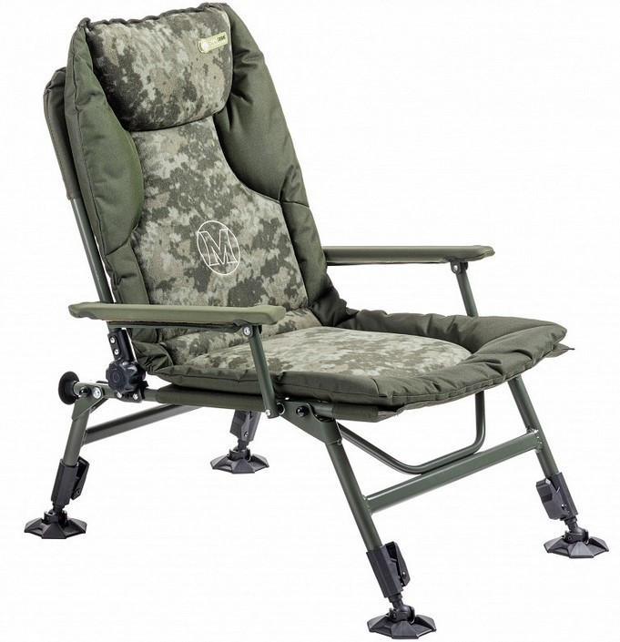 Edinstveno oblikovan in izredno lahek stol, narejen z uporabo novega ultralahkega okvirja. Na voljo je u udobno in debelo oblazinjeno vzmetnico v camo izvedbi. Močni nasloni za roke z neoprenskimi rokavi povečajo splošno moč stola in so zelo udobni. S popolnoma nastavljivim naslonom, vrhuskimi kliki na izvlečnih nogah s presenetljivo majhno težo in kompaktno velikostjo je to res zelo udoben stol za sedenje na daljših klampanjah.