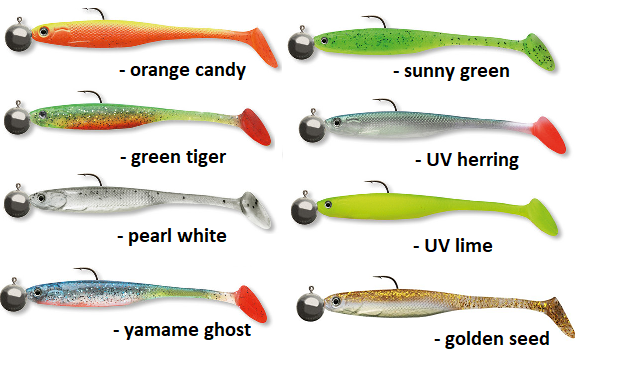 Popolnoma izbrana mešanica materialov s širokim, ravnim korpusom ima za ribo zelo privlačno delovanje. Vaba tudi pri nizki hitrosti, oziroma rahlem vleku zelo privlačno niha iz ene strani na drugo in premika ''boke''. Primerna je predvsem za lov na ostriža in ščuko. Vaba ima že nameščeno jigg glavo.